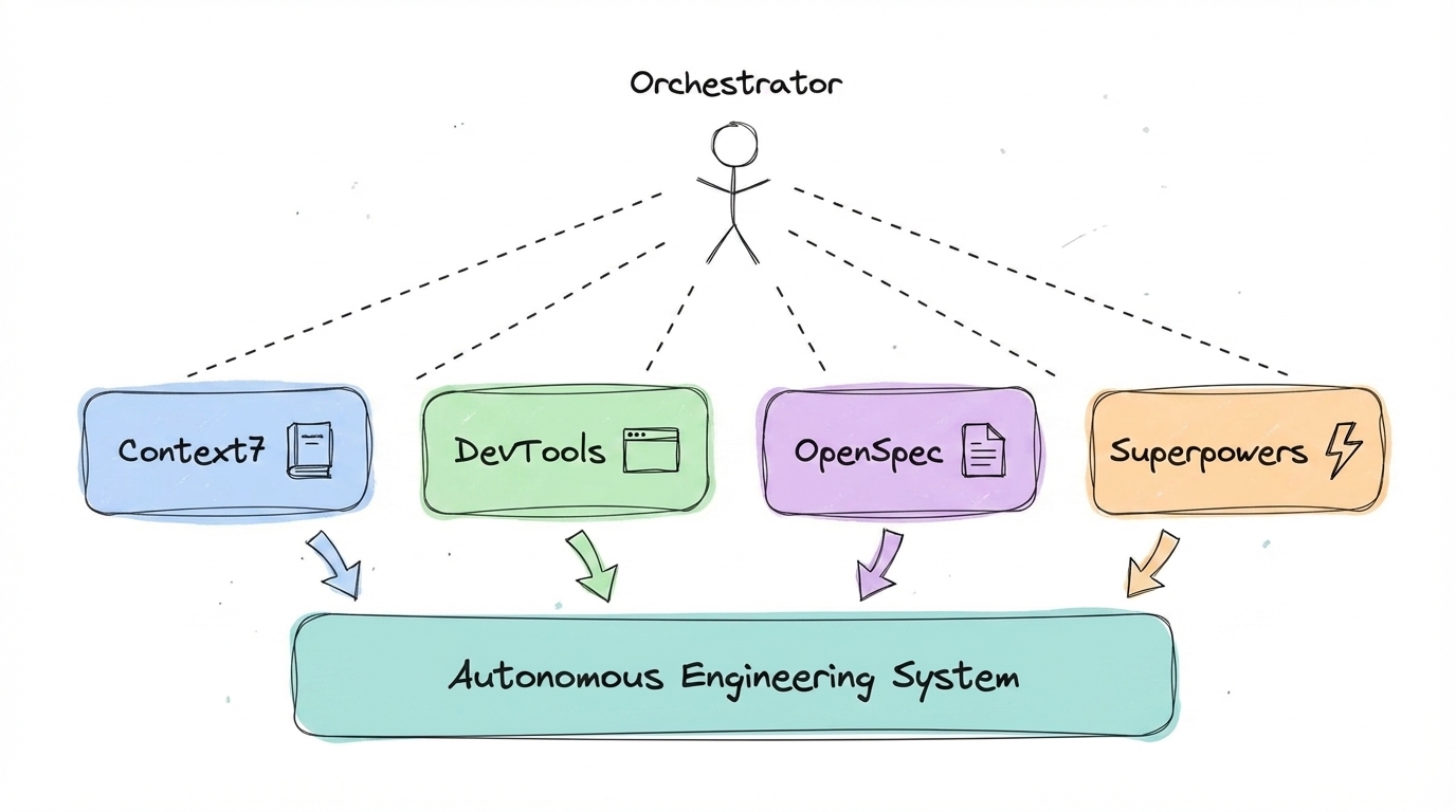 Transform Claude Code from a chatbot into an autonomous engineering system. Install four powerful tools — Context7 for real-time documentation, Chrome DevTools MCP for browser automation, OpenSpec for spec-first development, and the Superpowers plugin for structured workflows with subagent-driven TDD. Includes a complete skills reference covering all 26+ commands and 29 MCP tools.